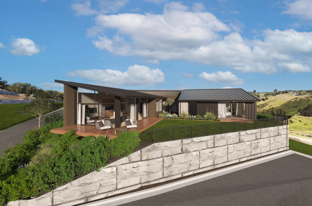Designed by ADNZ award-winning designer David Miller of RBA Studio, this 302mยฒ architectural home has been thoughtfully created to take full advantage of the stunning outlook while offering protection from the easterly winds.